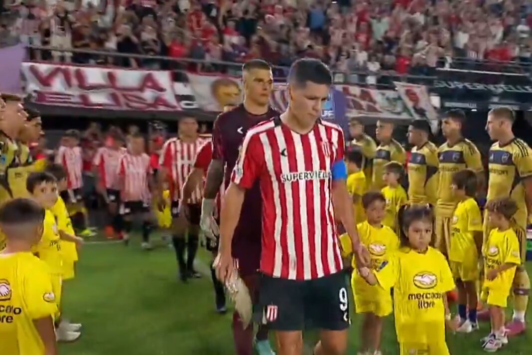 Con el pasillo por parte de los futbolistas de Boca (sin aplausos) y un gran recibimiento de la gente de Estudiantes, los equipos ya están en el campo de juego de UNO. En instantes se llevará a cabo el saludo protocolar entre los dos equipos y el sorteo entre los capitanes: Paredes, por el lado de los visitantes, y Carrillo, en el local.