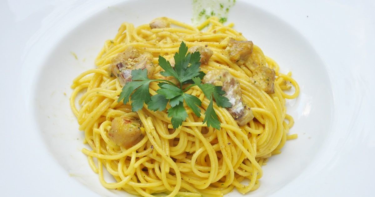 El chef Leonardo Fumarola, al frente del restaurante @ladesso_ristorante, propone una reinterpretación de la clásica salsa carbonara. En esta versión, los frutos de mar sustituyen al guanciale o panceta tradicional, ofreciendo un plato de pasta con un perfil de sabores costeros.