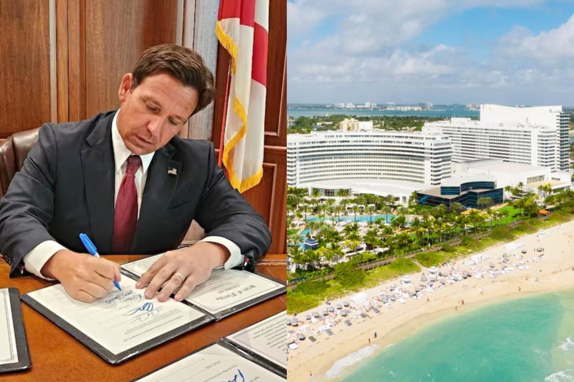 El gobernador de Florida, Ron DeSantis, firmó la ley HB 399 en Tallahassee, que otorga una aprobación administrativa automática para que el hotel Fontainebleau de Miami Beach construya un parque acuático masivo. Las obras podrían comenzar en el primer trimestre de 2026.
