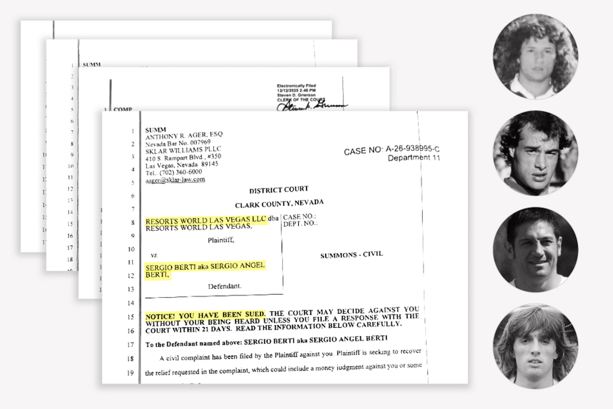 Un casino de Las Vegas reclama judicialmente el pago de 2.6 millones de dólares a Norberto Ortega Sánchez, Sergio Berti, Sergio Zárate y José Flores por créditos de apuestas impagos suscritos en 2025.